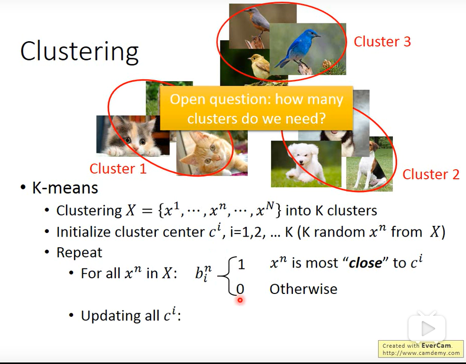 1)对training data每一个的x,判断他们属于1到K的哪个cluster,假设跟第i个cluster最接近的话,那么他就属于第i个cluster,binary就为1,反之为0.