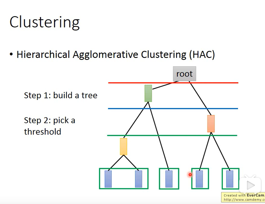 最后只剩红色和绿色了,再把他们平均起来,就得到了这个tree的root。这是一个根据相似度建立的tree structure。越早(root处)被分支的说明是越不像的。
