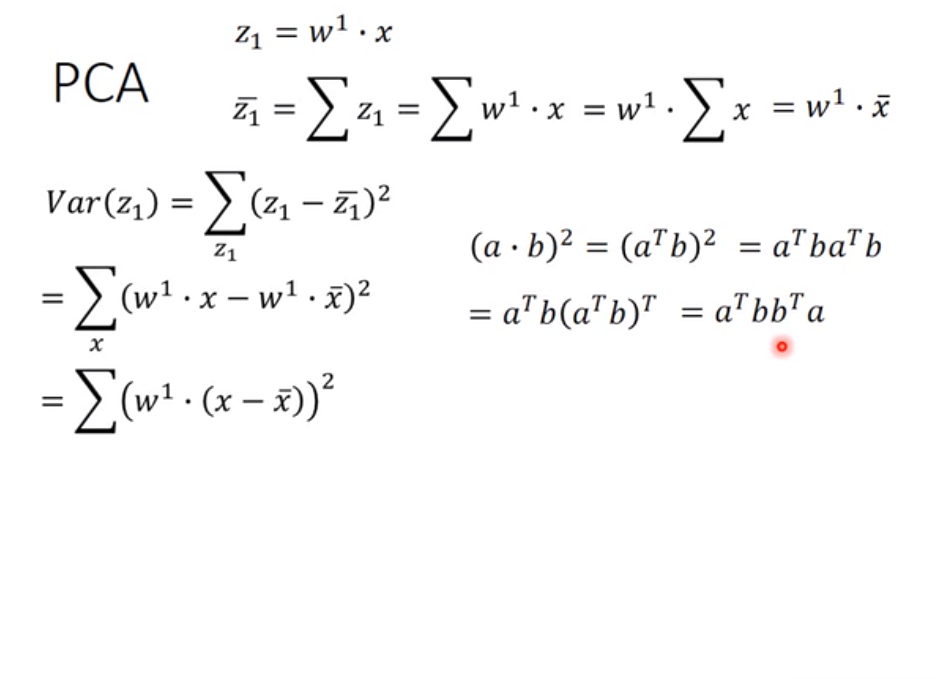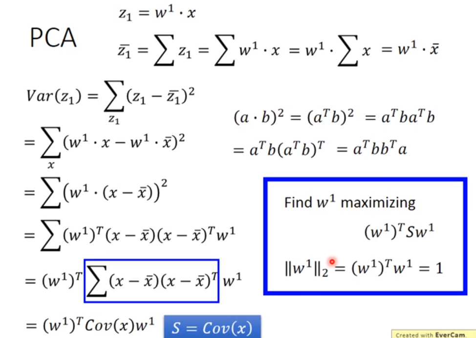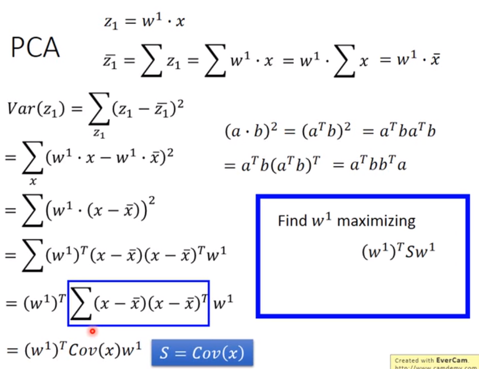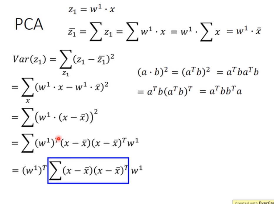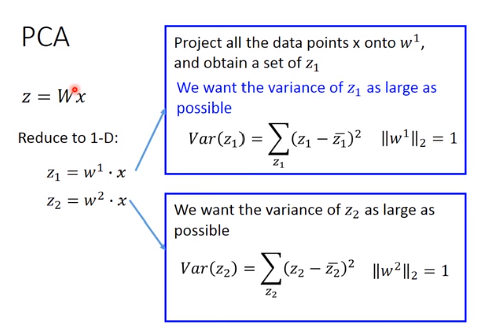如果用等式来描述的话,我们现在要maximize的对象是z1的varience。