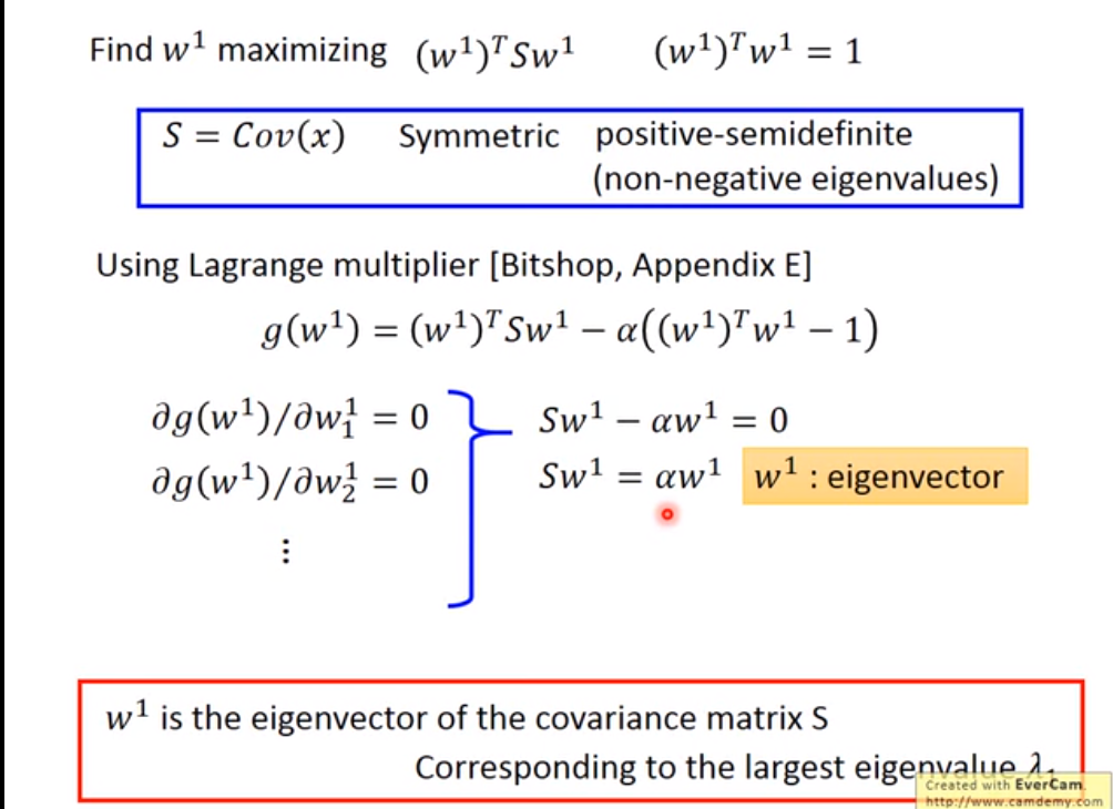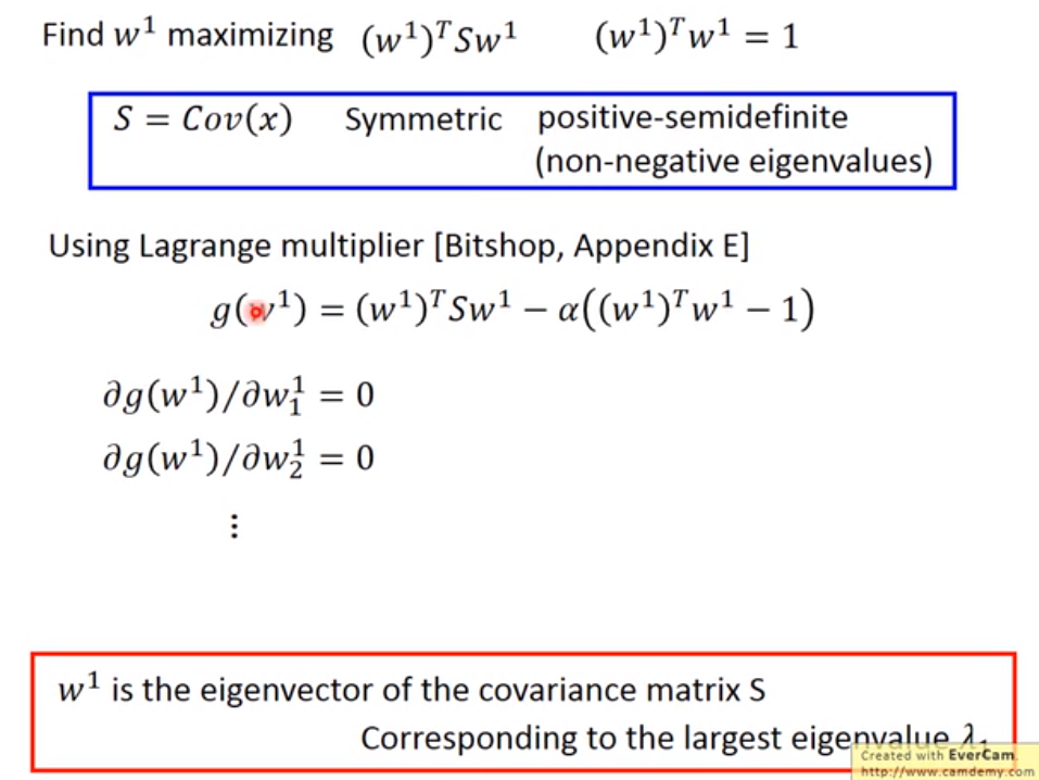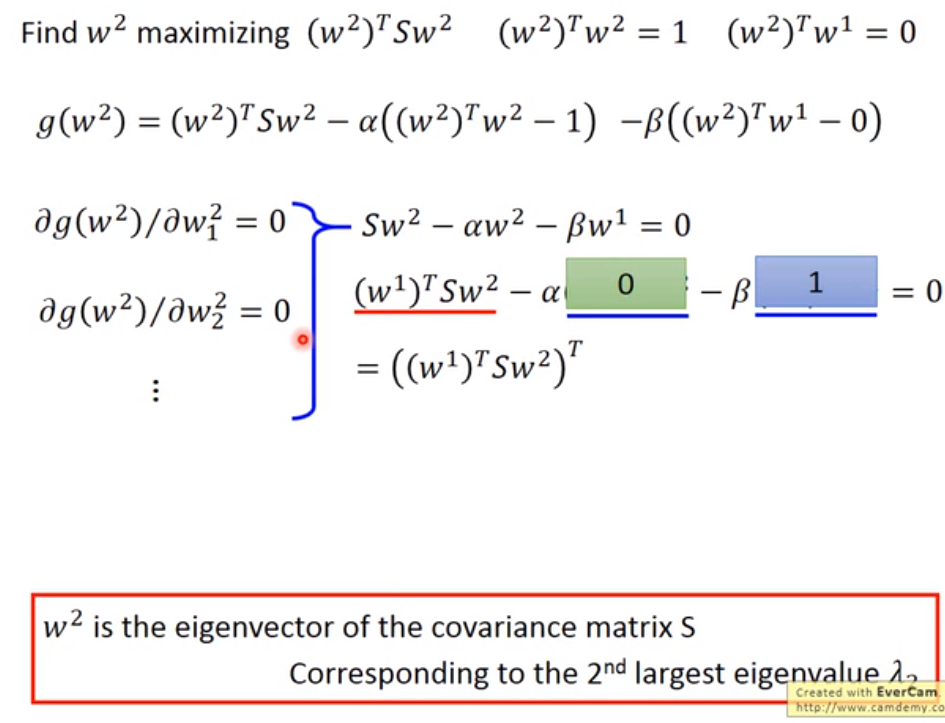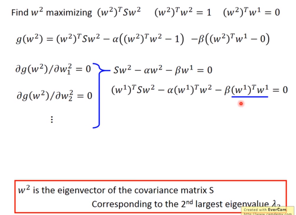 发现w2也是covarience matrix S的eigenvector,对应的第二大的eigenvalue