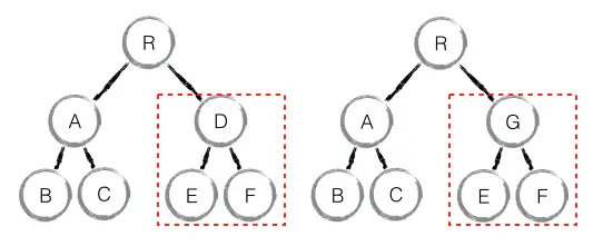 以 C 为根节点,整棵树会被新创建,而不是简单的移动,创建的流程为 create C->``create F->create G->delete C`。