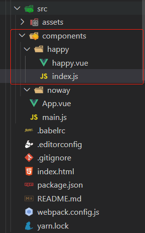 // 其中'./components/happy/index' 的 /index 可以不写,webpack会自动找到并加载 index 。如果是其他的名字就需要写上。