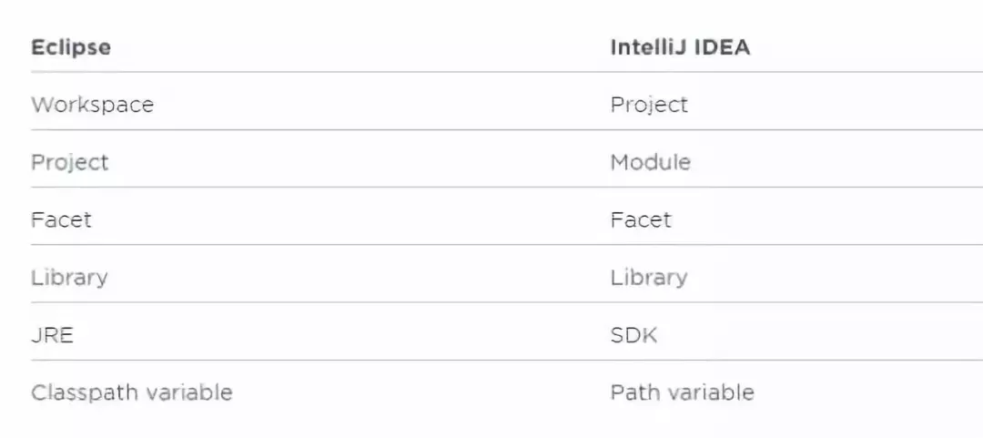 1. IDEA VS Eclipse 核心术语比较