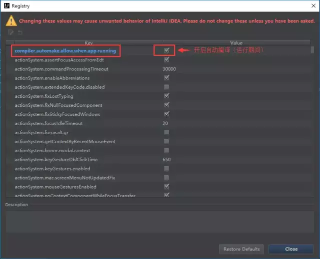 具体步骤: 敲击 Ctrl + Shift + Alt + / 然后双击Shift搜索进入Registry ,找到compiler.automake.allow.when.app.running ,然后勾选上。