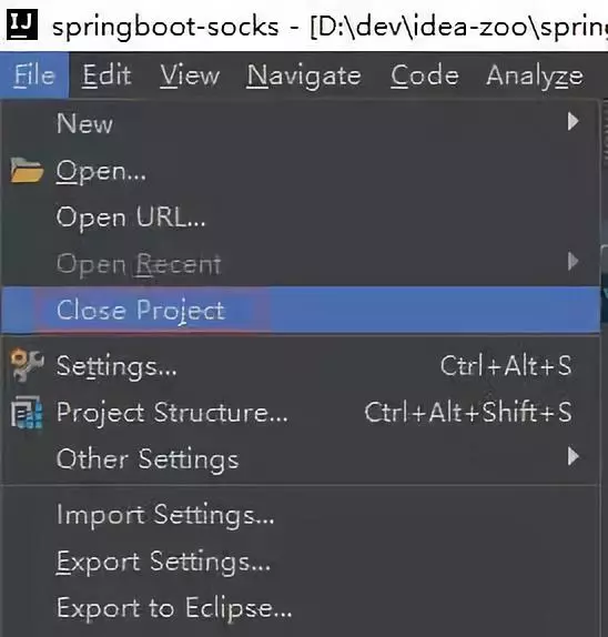 点击File-> Close Project 即可快速关闭当前项目;