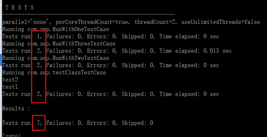 (4) In my project, by default all 7 test methods will be executed during Maven build: