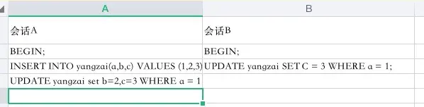 会话A开启事务,执行INSERT插入操作,a是唯一索引,会话A在插入这条数据时,会先使用a索引当前读判断是否唯一索引冲突,yangzai表已经预先初始化(1,2,3),会话A插入数据失败,但是会话A还是持有a索引的共享锁(锁的两阶段,只有在事务提交后锁才会释放),会话B开始更新a=1这行数据,更新前,执行器会调用InnoDB引擎接口获取a=1这行数据,并且在a=1索引上加独占锁,会话B在a=1索引加独占锁等待,因为a=1的共享锁被会话A持有还未释放