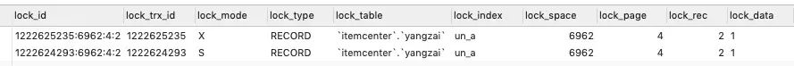 Record lock, heap no 2 PHYSICAL RECORD: n_fields 3; compact format; info bits 0