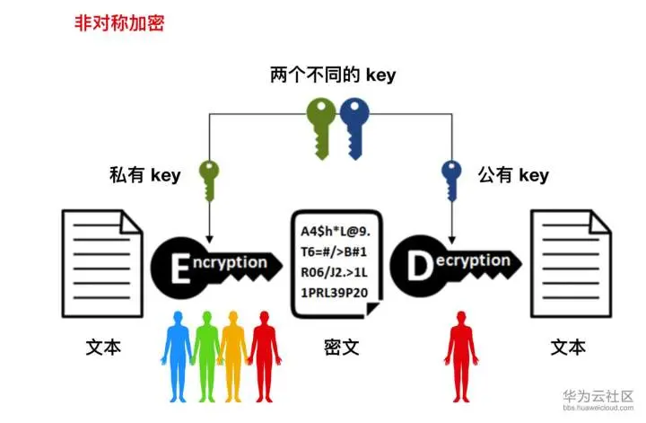 使用公钥加密的文本只能使用私钥解密,同时,使用私钥加密的文本也可以使用公钥解密。公钥不需要具有安全性,因为公钥需要在网络间进行传输,非对称加密可以解决密钥交换的问题。网站保管私钥,在网上任意分发公钥,你想要登录网站只要用公钥加密就行了,密文只能由私钥持有者才能解密。而黑客因为没有私钥,所以就无法破解密文。
