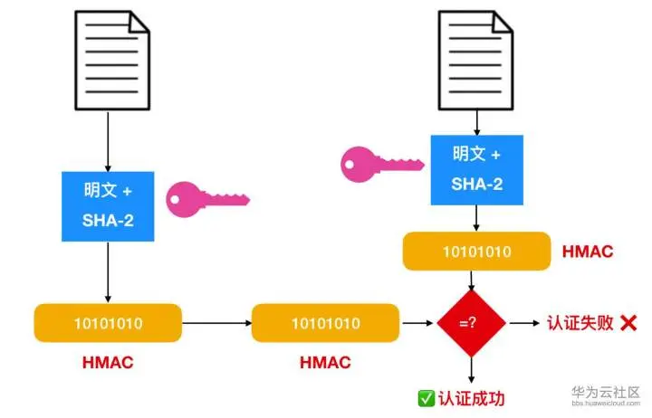 HMAC 是 MAC 更进一步的拓展,它是使用 MAC 值 + Hash 值的组合方式,HMAC 的计算中可以使用任何加密哈希函数,例如 SHA-256 等。