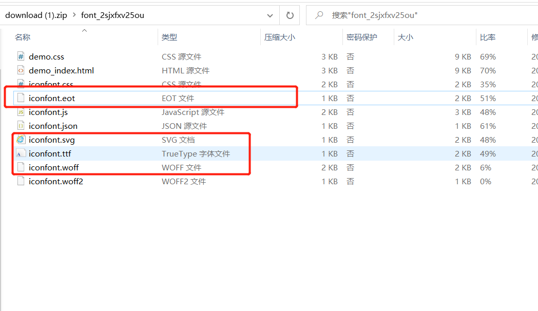 2.解压文件后选择下面四个文件,添加到src/assets/icons中,注意修改名称防止覆盖