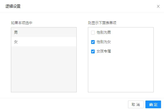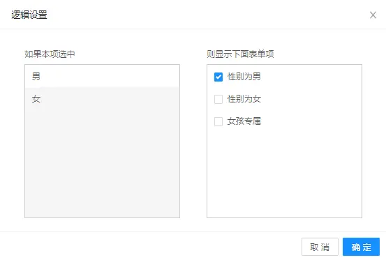 ], // 表单渲染条件