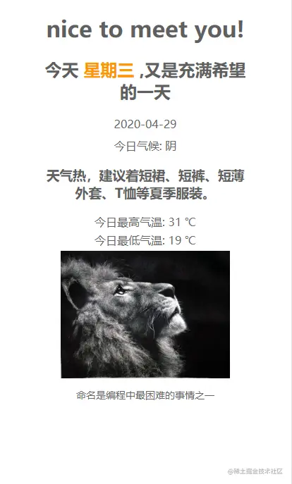使用node实现每天推送一封天气邮件,效果图如下: