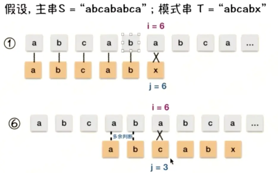 核心:找到模式串中重复的子串,减少遍历的次数;