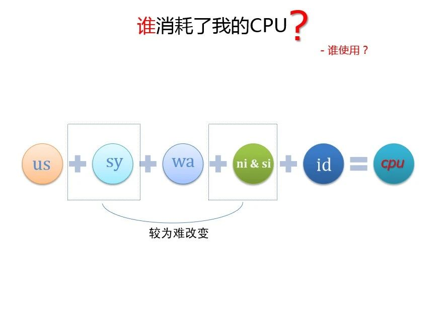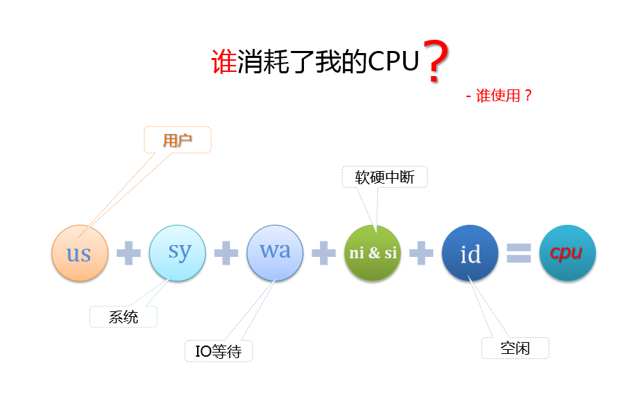 谁在消耗cpu? 用户+系统+IO等待+软硬中断+空闲