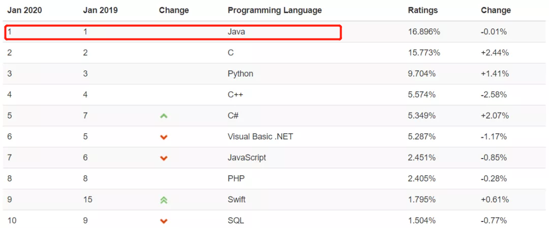 TIOBE公布了2020年最新一期的编程语言排行榜Java依然稳占榜首。