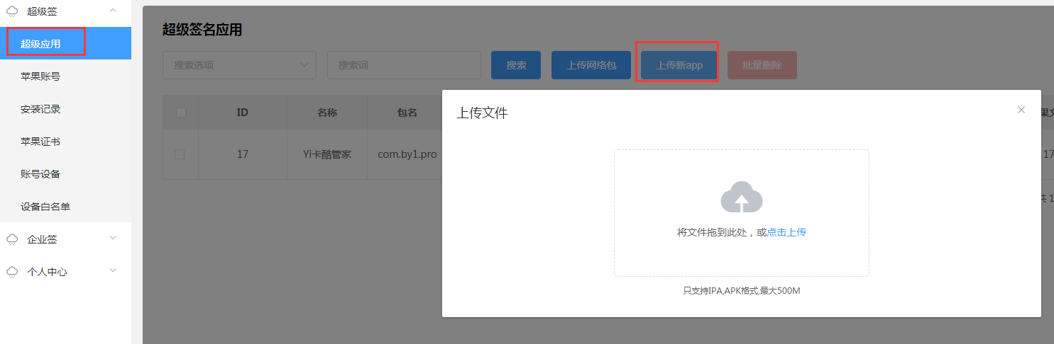 1、登录超级签系统后台