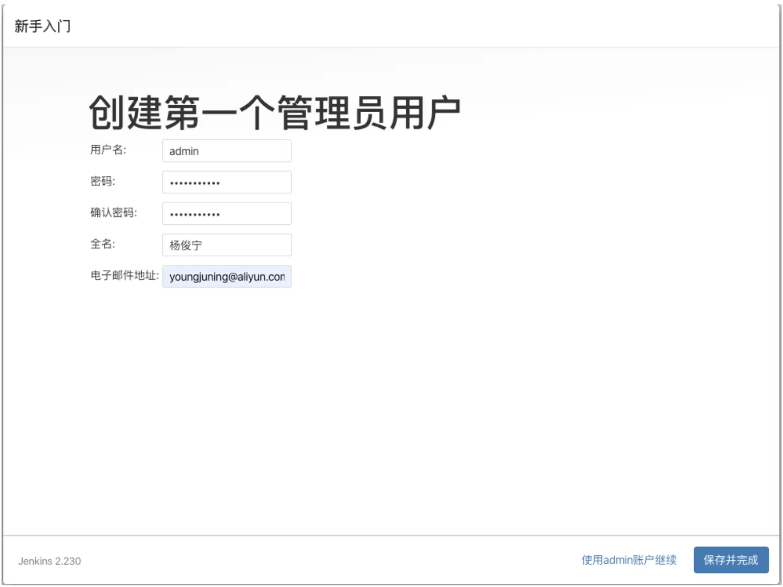 5、安装完插件后,进入创建管理员界面: