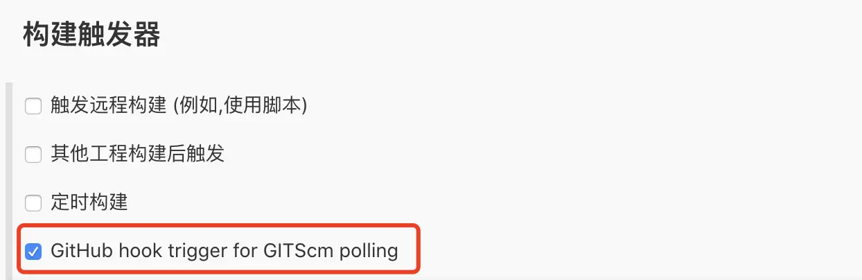 构造触发器选择:GitHub hook trigger for GITScm polling