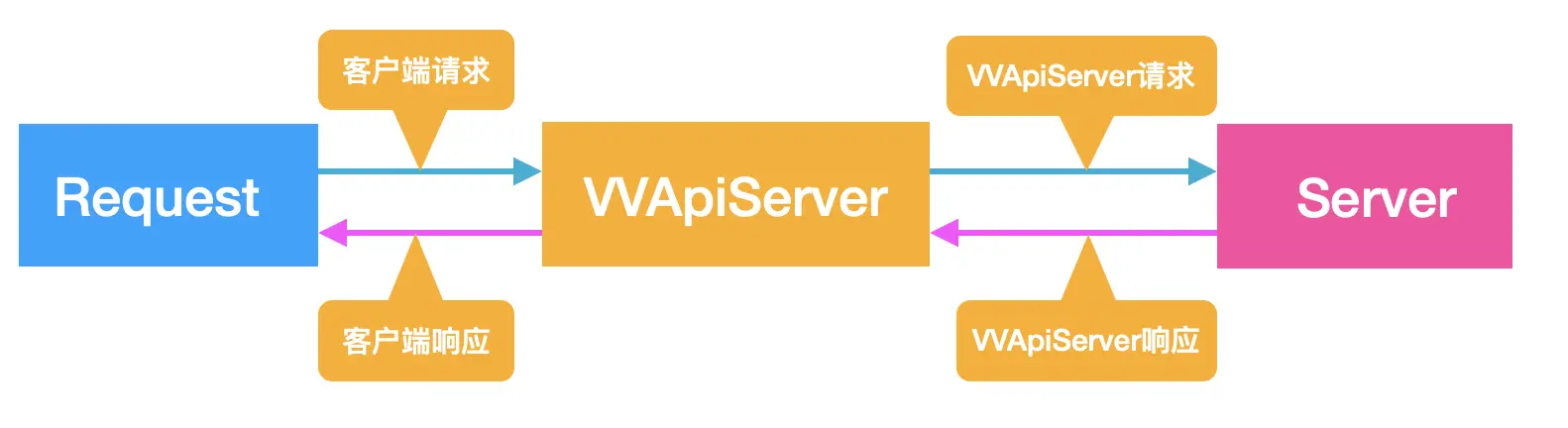 拦截匹配Path的客户端发起的请求,转化为都是请求VVApiServer的本地请求。VVApiServer得到请求的host和vv_api_delay两个参数,决定是否由VVApiServer发起第二次真实请求。等返回结果再处理或则直接返回本地自定义结果。