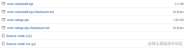 这里有好几种,我们选择nvm-setup.zip,这是一个安装包,直接下载安装即可。