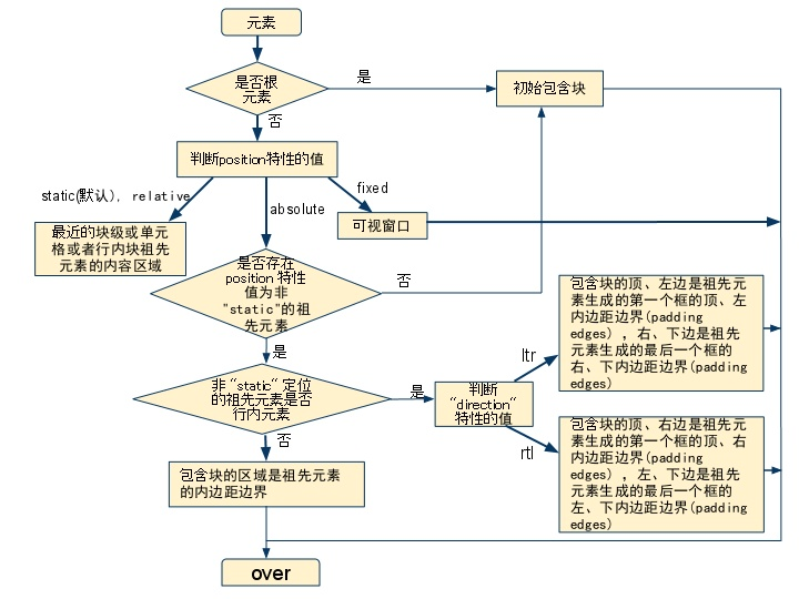 1)direction是ltr(左到右)。包含块的上,左边缘是祖先元素生成的第一个框的上,左内边距边界(padding edge) ;包含块的下,右边是祖先元素最后一个盒子的下,右内边距边界(padding edge)