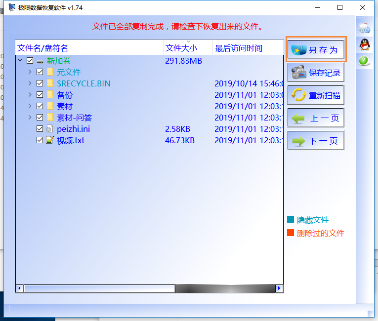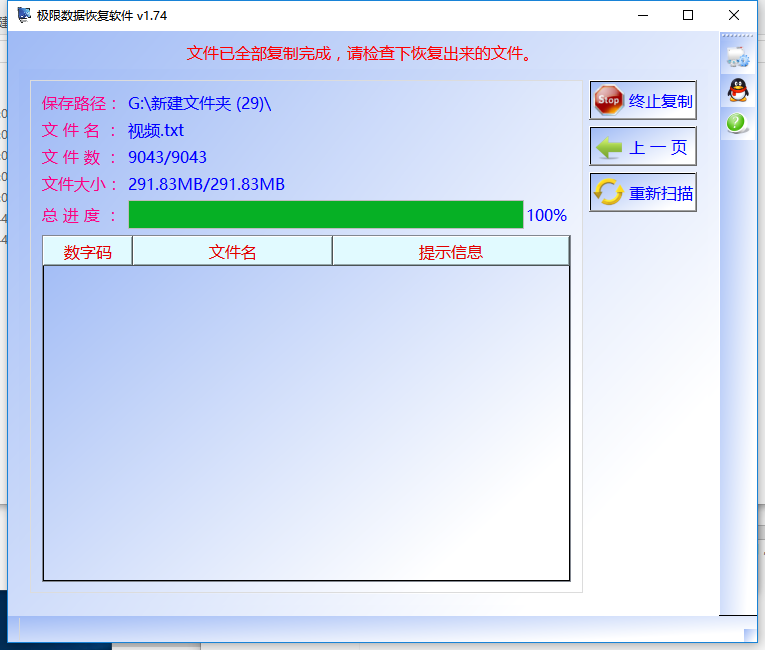 注意事项2:磁盘结构损坏且无法读取恢复出来的数据需要暂时保存到其它盘里。