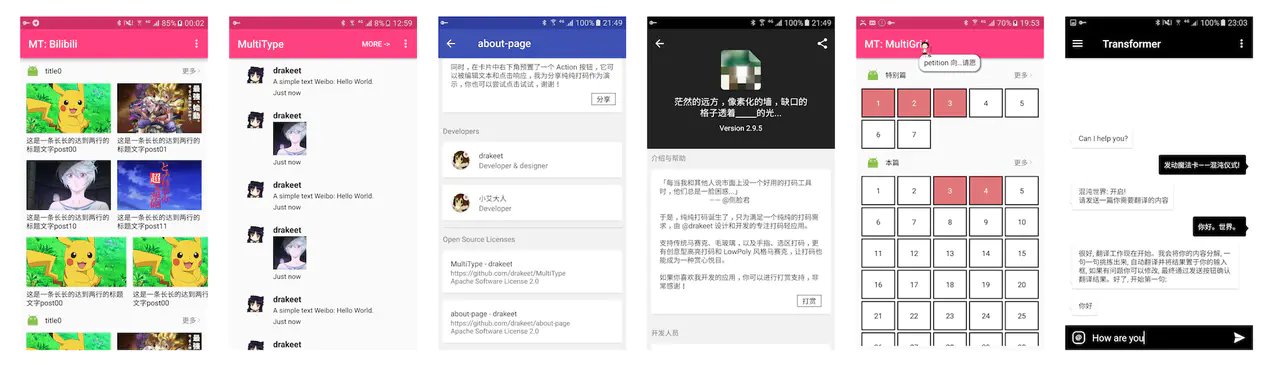 MultiType 可以简单,灵活的为RecyclerView实现多类型列表。