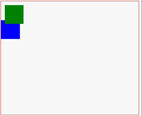 如果再出现另一个参照物蓝色方块,蓝色方块会认为绿色方块还在原来的位置,所以会有如图效果: