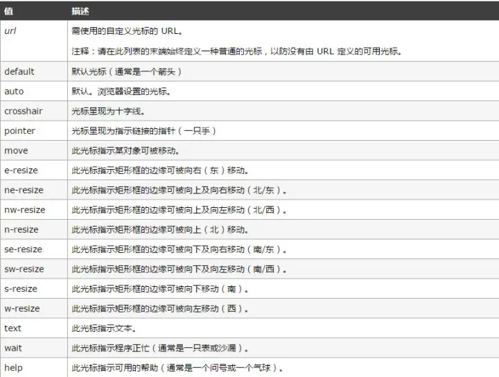 cursor属性的用法如下表所示