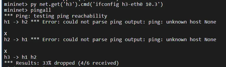 在自定义网络拓扑完以后pingall 操作无法进行