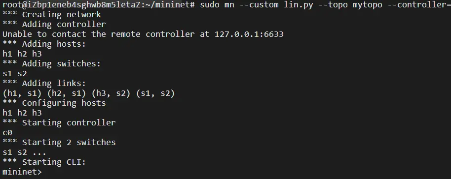 在mininet目录下 vim lin.py 开始编辑