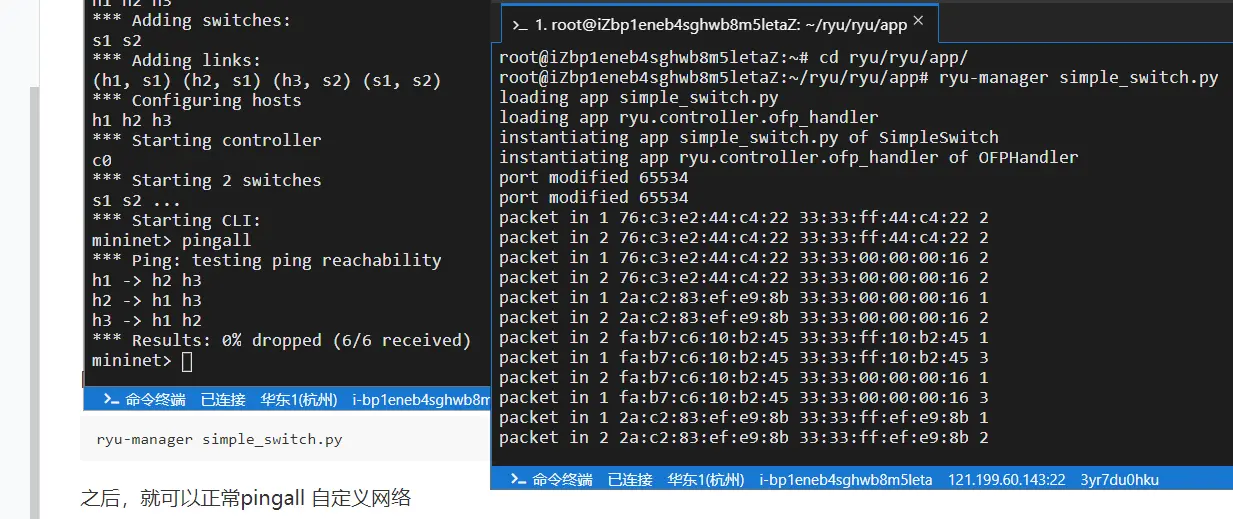 之后,就可以正常pingall 自定义网络