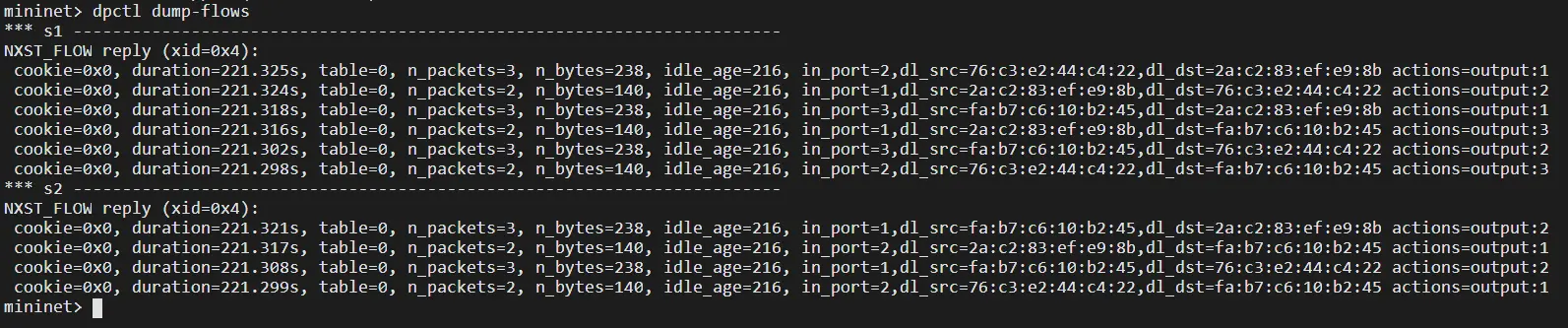 dpctl dump-flows #查看静态流表
