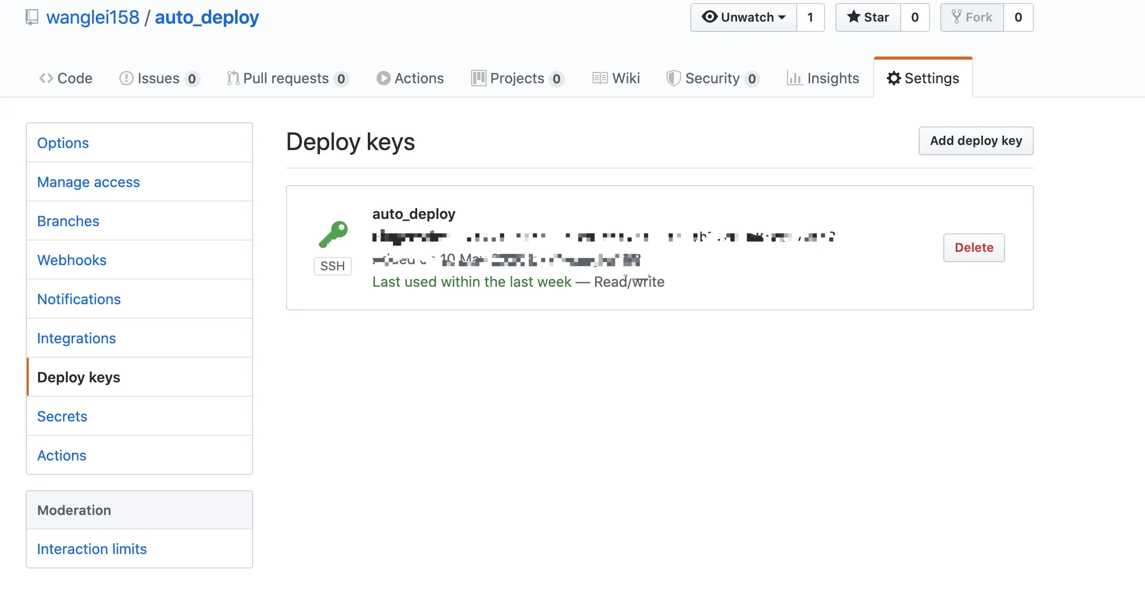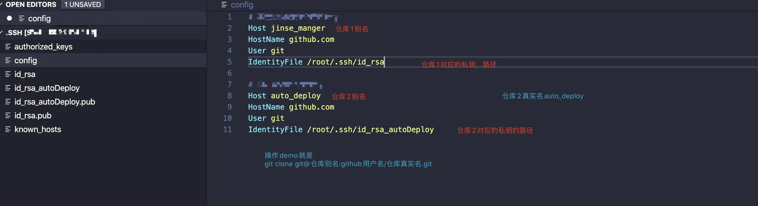 我一个linux服务器id_rsa.pub怎么样对应我一个github多个项目仓库? 前端嘎嘣脆 2020-05-10 156 阅读1分钟 #let‘s go 问题背景,我在同一个Linux服务器,生成ssh公钥秘钥之后, 配置到github的单个项目的Deploy keys 这个时候, 我对这个仓库pull、push等操作时,不需要输入github账号and密码, 但是当我配置我github账号,另外一个仓库的时候,一个ssh keys显然就不行了,这就需要在.ssh目录下面配置一个config文件(没有就要新建一个) 这样就配置好了一个机器 对应多个仓库了