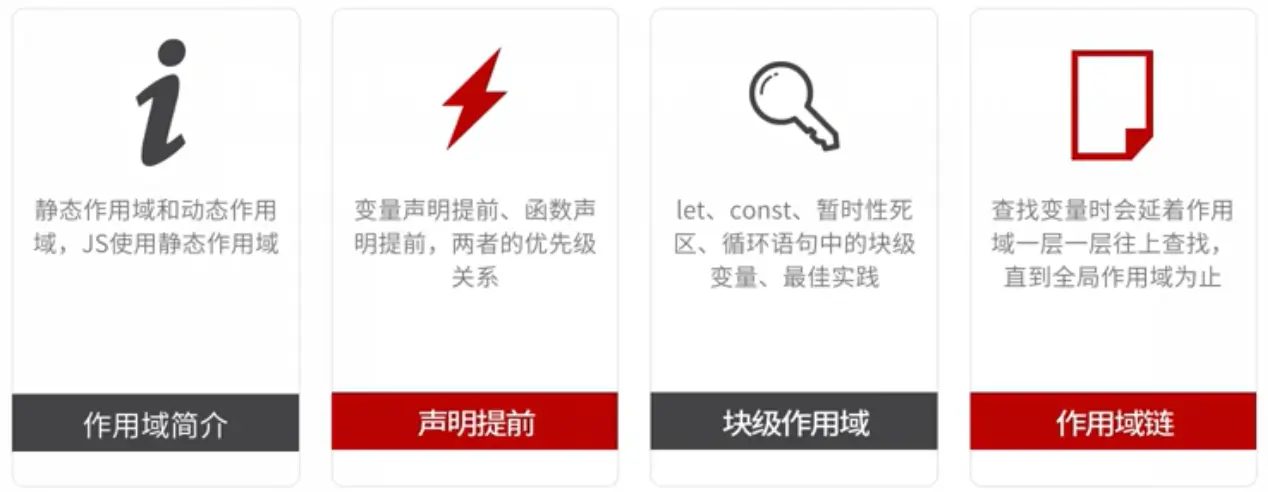 什么是作用域,在程序代码中,作用域就是变量和值所建立的联系的有效范围,通俗的来讲就是变量和函数的有效访问范围,作用域并不是JavaScript独有,任何程序语言中都会有作用域的概念,作用域分为静态作用域和动态作用域。静态作用域就是在“定义时”决定的,而动态作用域是在“调用时”决定的。而我们的JavaScript就是用的使用的静态作用域也叫词法作用域。