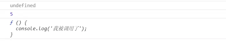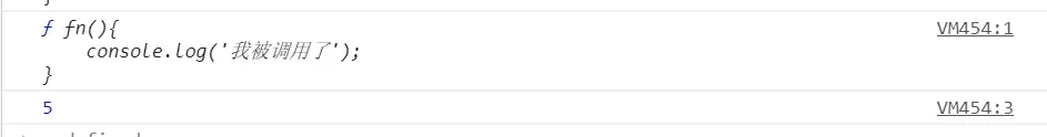 这个时候的函数fn就被当成一个普通的变量赋值。所以会输出undefined,5 ƒ () { console.log('我被调用了'); }。等价于下面的代码