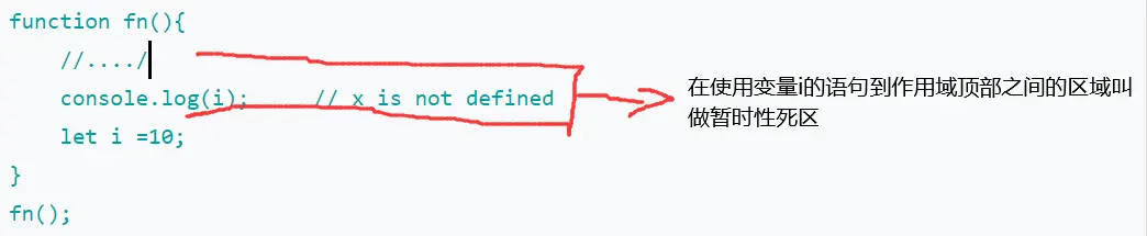 let定义的变量,只能在块作用域里访问,不能跨块访问,也不能跨函数访问。