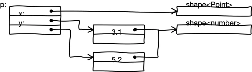 在64位架构中,双精度值和指针的大小相同。所以如果我们假设Point字段总是包含number值,则可以将它们直接存储在对象中。