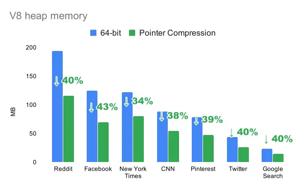 让我们来看看指针压缩的最后结果!对于这些结果,我们使用与本文开头介绍的相同的网站测试。提醒一下,他们代表用户在真实世界网站使用情况。