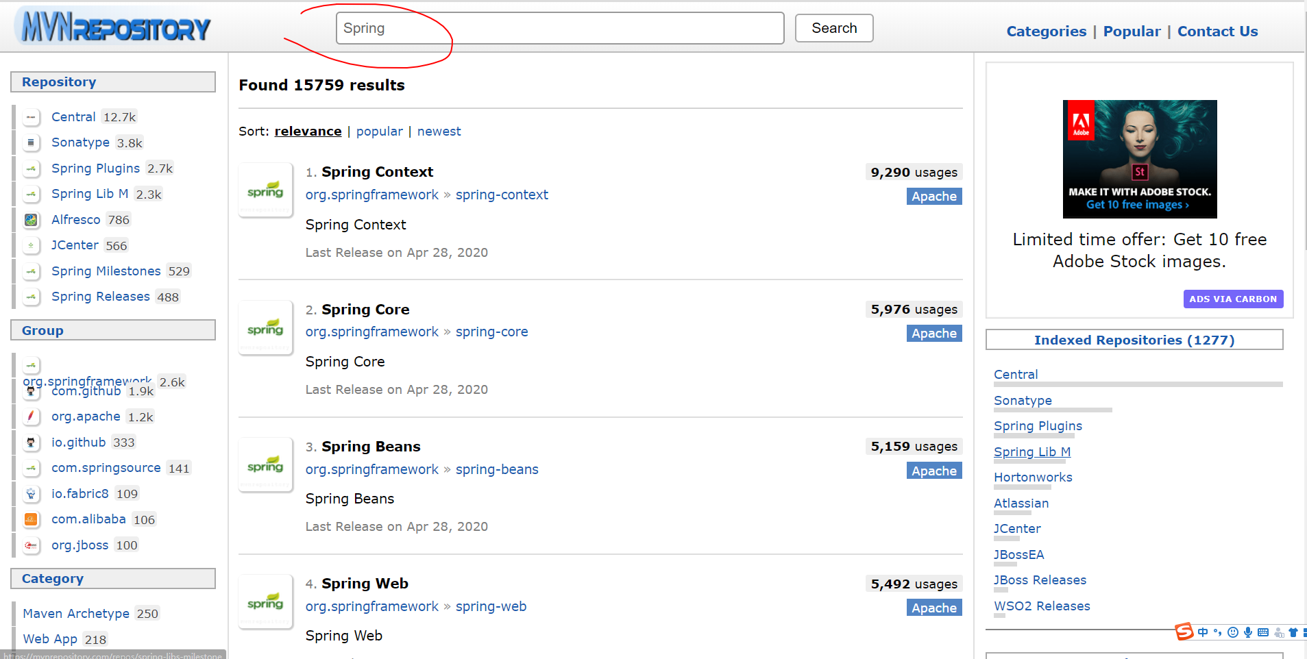 记:IDEA导入新项目提示“XXX包不存在”的解决办法 1900Vision 2020-05-10 2,705 阅读1分钟 因为问题已经解决,所以有些出现问题的截图没有及时的截取下来。 问题描述: Java:程序包org.springframework.beans.factory.annotation不存在 红框中会波浪线提示错误。 解决: 到https://mvnrepository.com直接搜提示所找不到的包名进行下载,搜不到时把包名范围扩大 之后选择下载量高的 将框中的内容复制到pom.xml 中 pom.xml 之后等待IDEA进行加载就行啦
