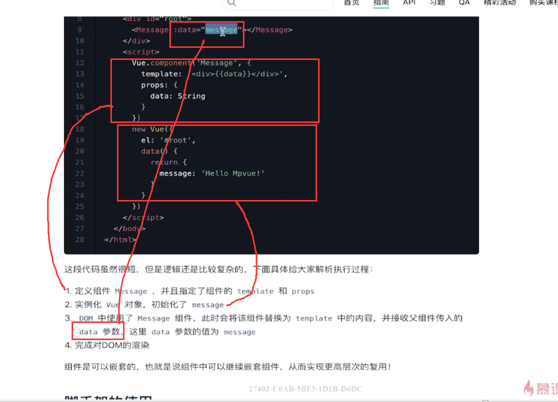 这个模板语法中分为三个部分,一个是template部分,对应模板语法;第二个是script,对应了js脚本,第三个是css部分;