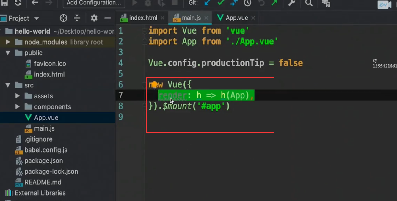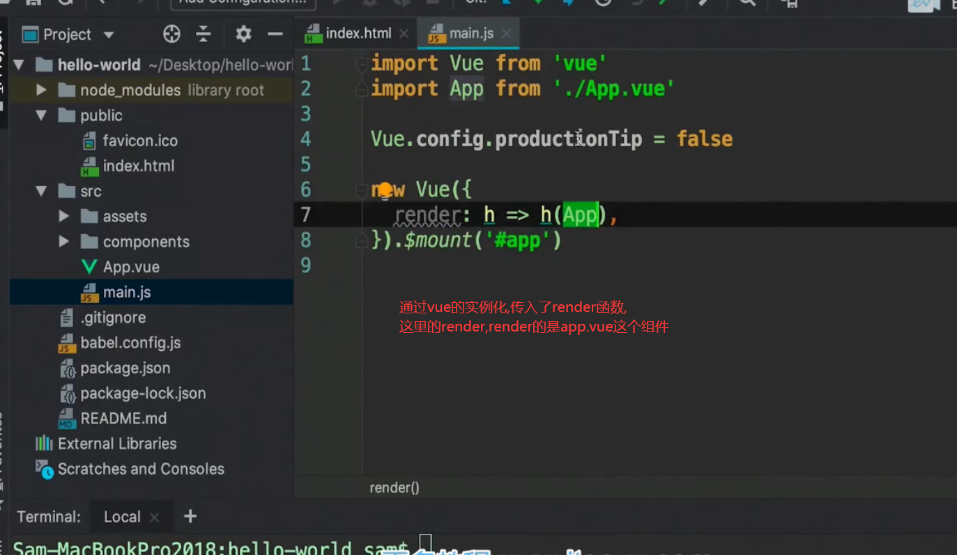 然后执行main.js中的render函数,对界面进行渲染