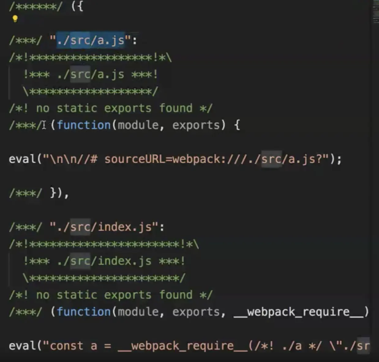 第一个参数key是"./src/a.js":是require或者import引用外部文件的路径,value是一个函数打包后的内容;