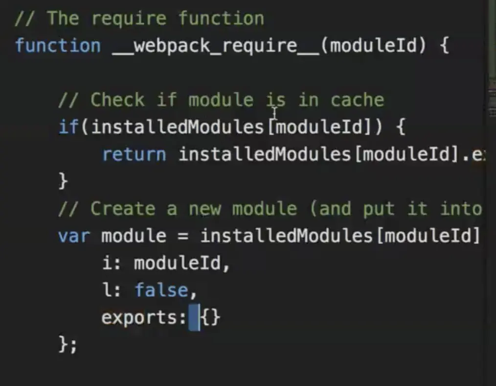 启动器函数(webpackBootstrap)里边定义了__weppack_require__函数、module和exports