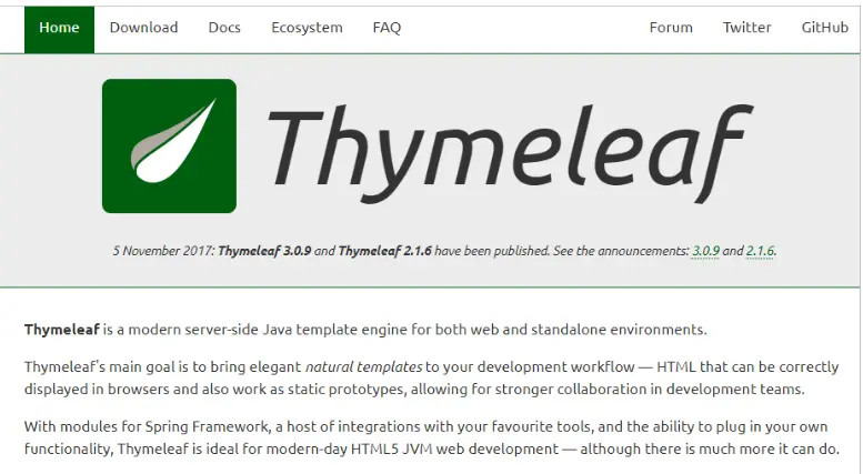 借助Spring Framework的模块,可以根据自己的喜好进行自由选择,可插拔功能组件,Thymeleaf是现代HTML5 JVM Web开发的理想选择 - 尽管它可以做的更多。
