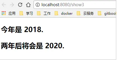 <p>今年是 <span th:text="2018">1900</span>.</p> <p>两年后将会是 <span th:text="2018 + 2">1902</span>.</p> -