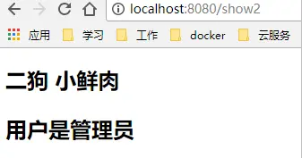 <span th:text="${user.name} ?: '二狗'"></span>当前面的表达式值为null时,就会使用后面的默认值。