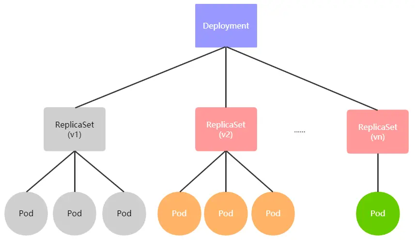 Deployment 实际上一个两层控制器,Deployment 控制 ReplicaSet,ReplicaSet 控制 Pod。ReplicaSet 有版本区分,滚动更新的能力就是基于 ReplicaSet 的版本来实现,下文会介绍。