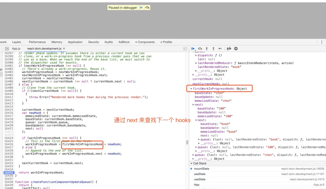我们注意下mountWorkInProgressHook()的firstWorkInProgressHook: